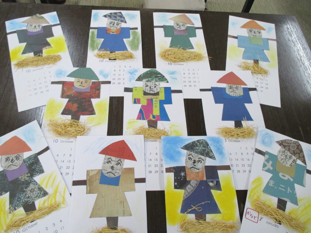 恒例の新聞切り紙カレンダーは「案山子」です。