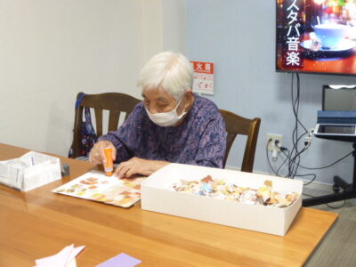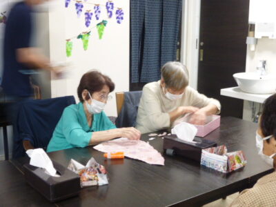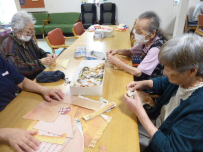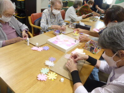 薄いお花紙が破れないように慎重に貼り合わせました。
