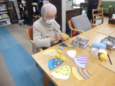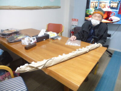 こちらではニット帽のポンポン作りに余念がありません。