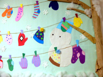 2月の壁画、そんな雪の日に大活躍する小物たちを主題に据えました。