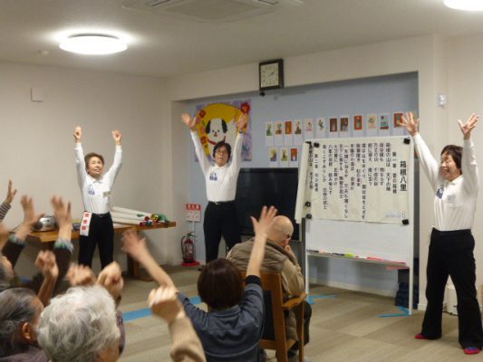 懐かしい唱歌や童謡を歌いながら体操をしていくので