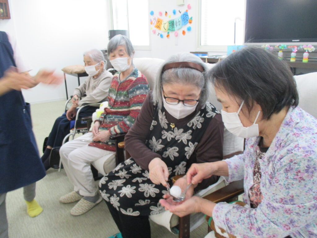 スプーンリレーやお手製の巻き巻きや定番の玉入れなどしました。さすが皆さん、日ごろのおじゃみゲームで鍛えているだけあって大奮闘されていました。